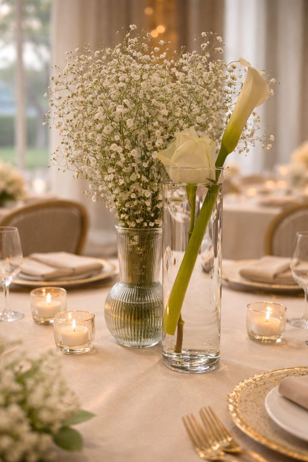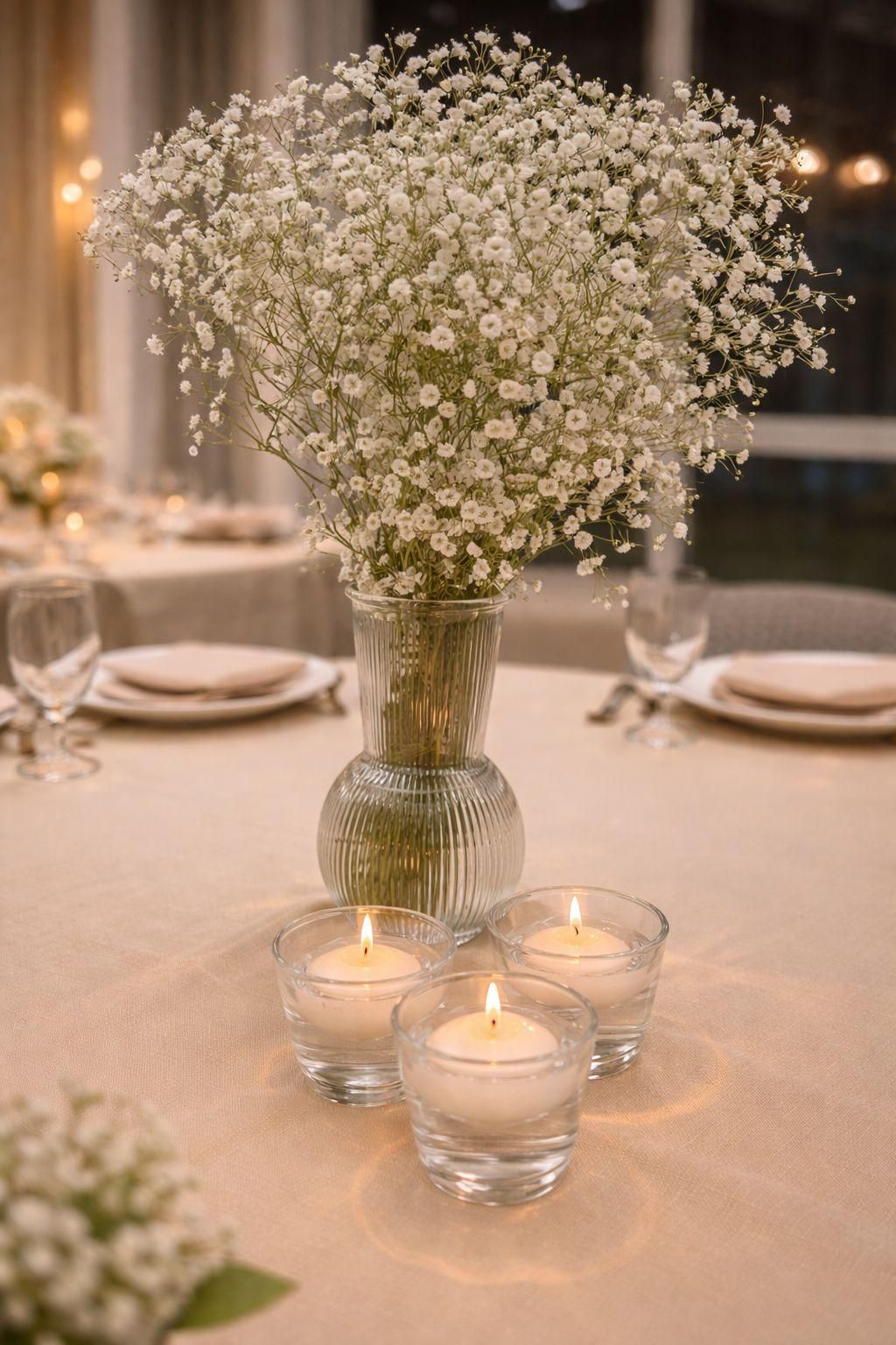 ✔ עיצוב בהתאמה אישית לקונספט האירוע ✔ פרחים טריים / מלאכותיים ברמה גבוהה ✔ שילוב אלמנטים יוקרתיים – נרות, זכוכית, זהב ועוד ✔ התאמה מושלמת לשולחנות ולחלל האירוע כל שולחן מקבל את תשומת הלב שהוא ראוי לה כדי שכל האירוע ייראה מדויק, מרשים ובלתי נשכח.